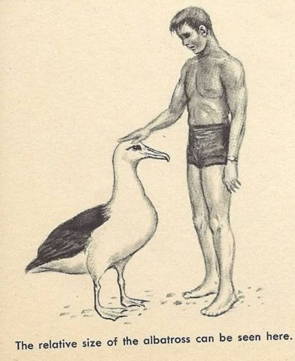 I know albatross are big, but I can’t stop seeing it as an abnormally small man petting an abnormally well-behaved seagull.